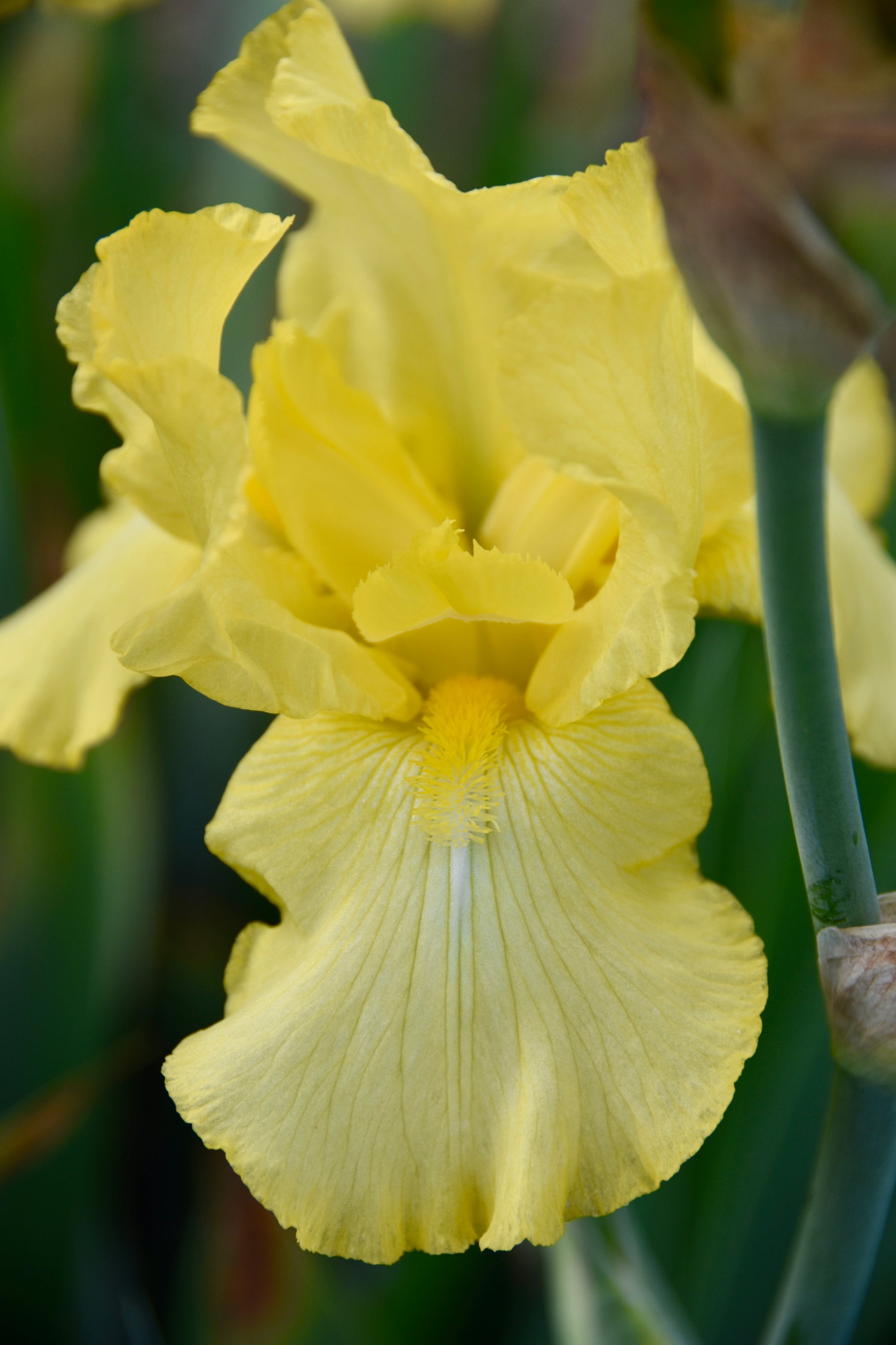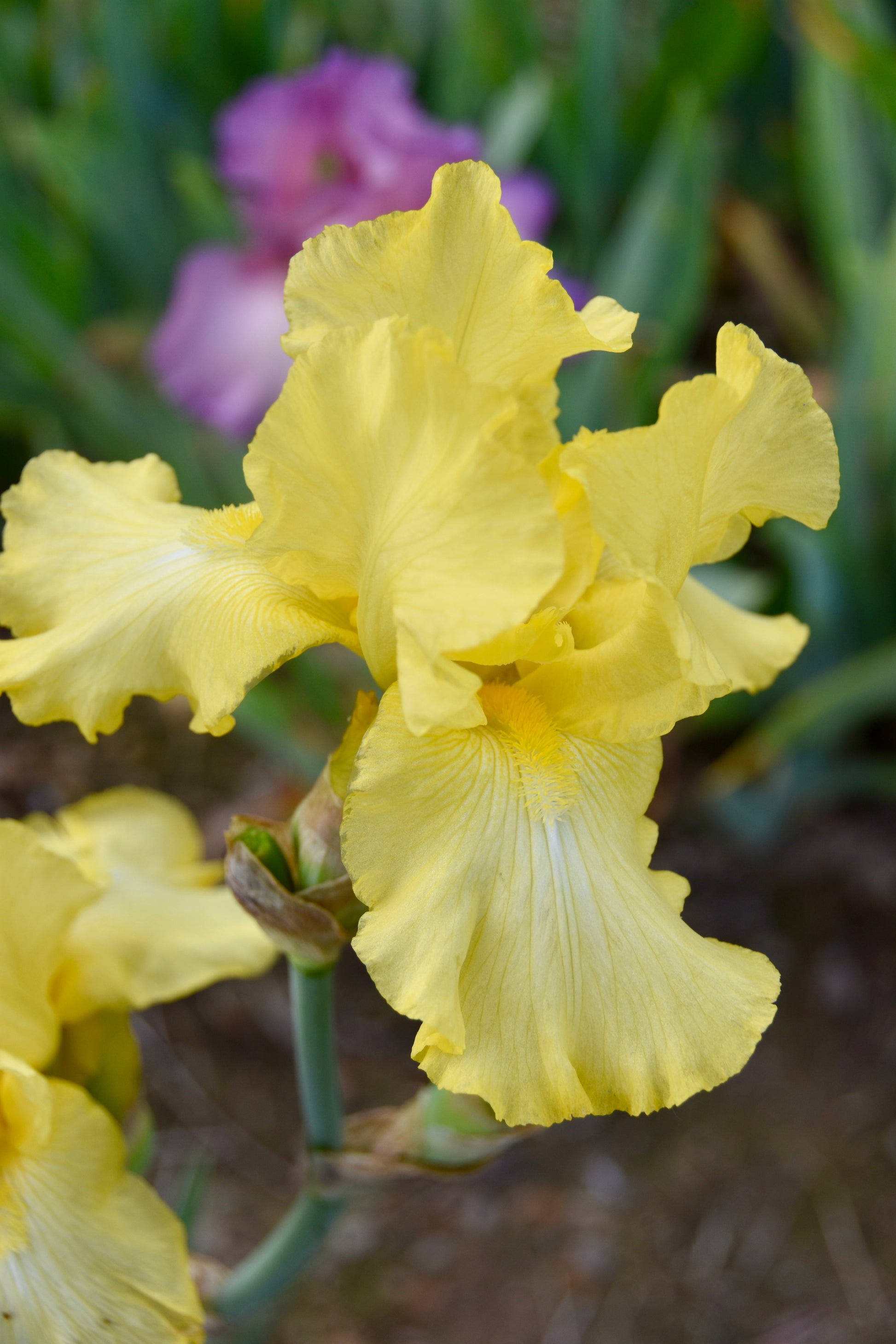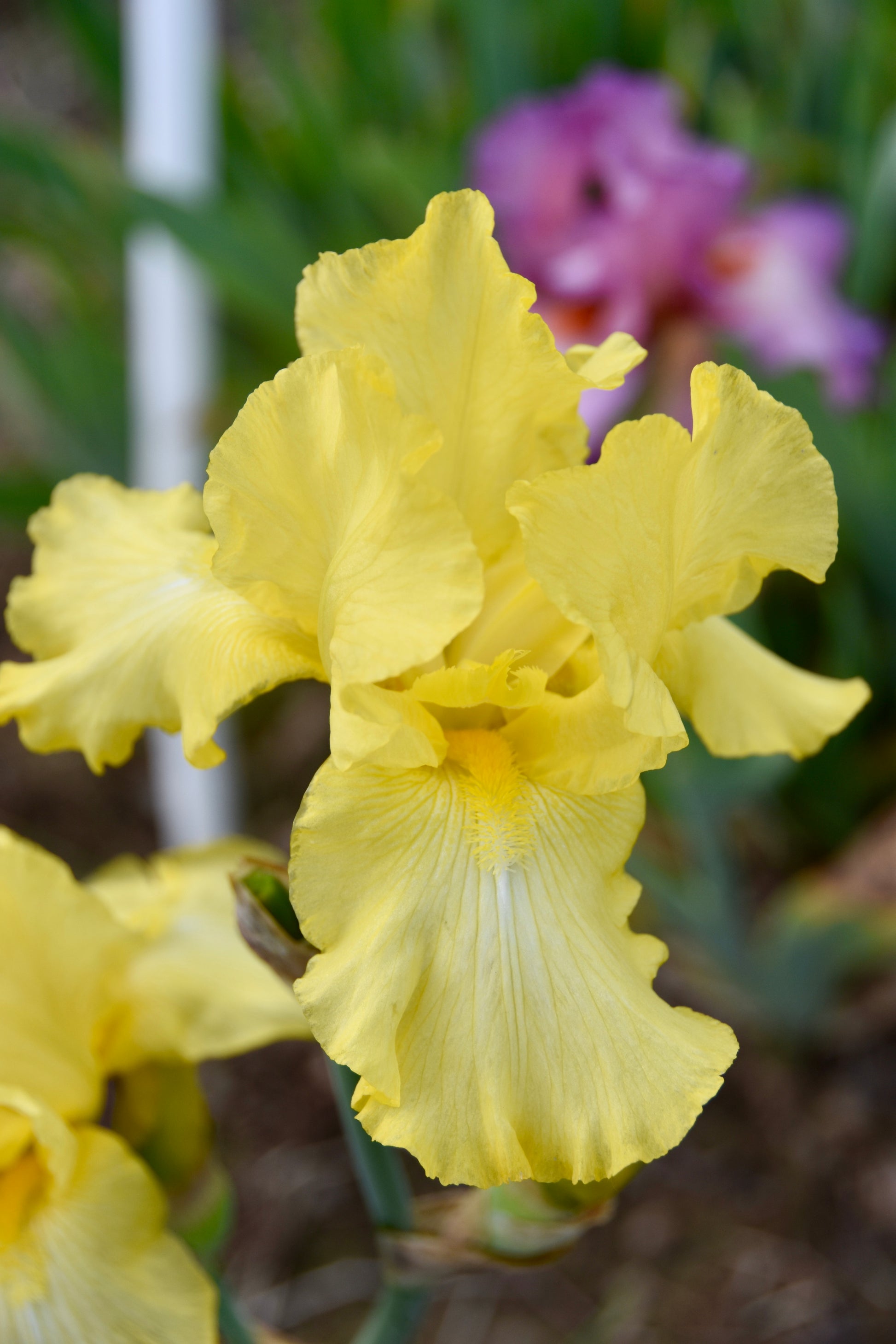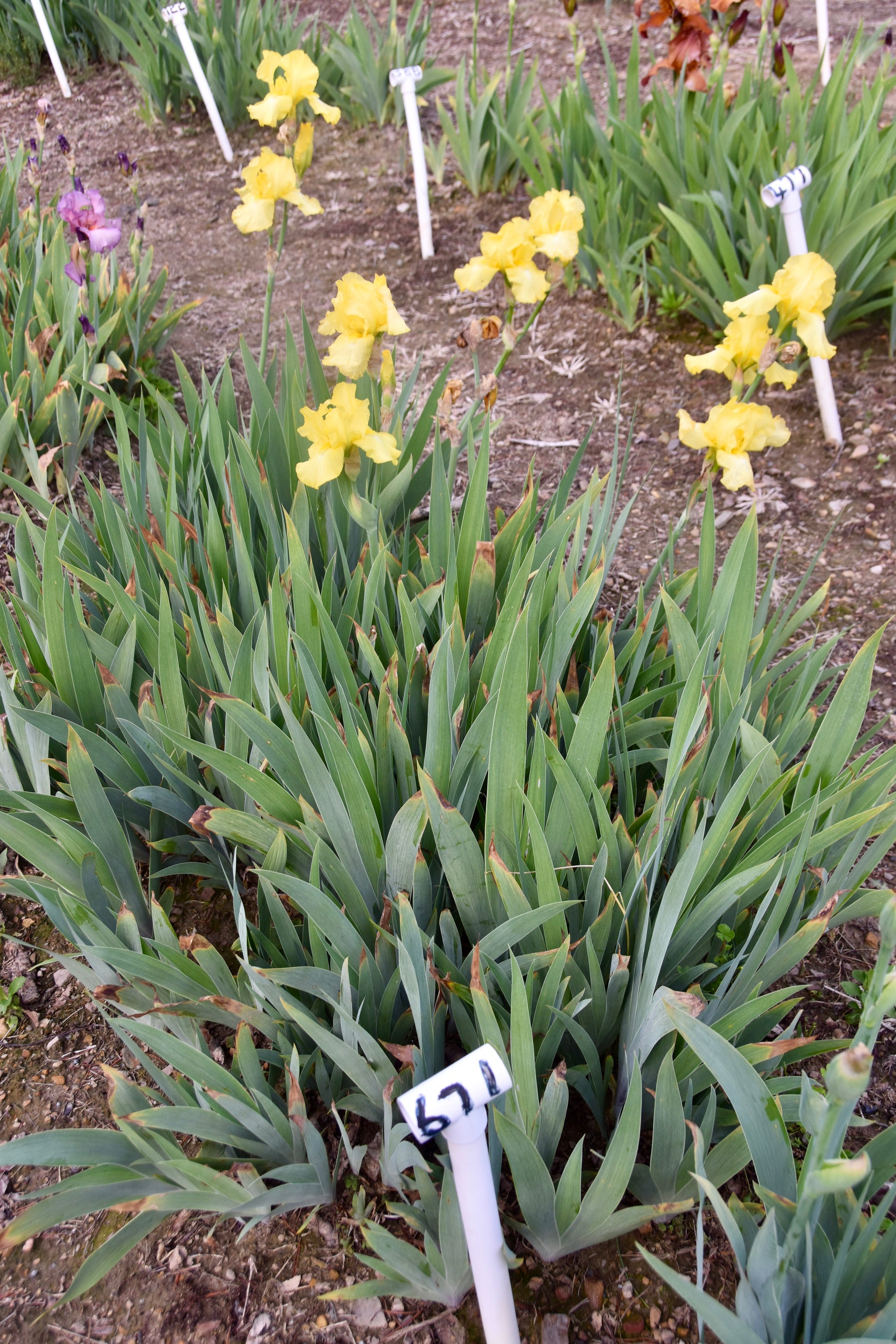 Harvest of Memories - (Lloyd Zurbrigg, R. 1984). Seedling R 87DY. TB, 38" (97 cm). Midseason bloom and rebloom (October in Virginia). Dresden yellow (HCC 640/1); yellow beard; slight sweet fragrance. Parentage: ('Magic Memories' x 'Key Lime') X 'Corn Harvest'. Avonbank Gardens 1985. Rebloom reported in: AL, AR, AZ, CA, GA, IA, IL, IN, KS, KY, LA, MD, MN, MO, MS, NC, NE, NJ, NM, NY, OH, OK, PA, SC, TN, TX, UT, VA, WA, WI, WV, Ontario, So. Australia. USDA Zones 3, 4, 5, 6, 7, 8, 9, 10.