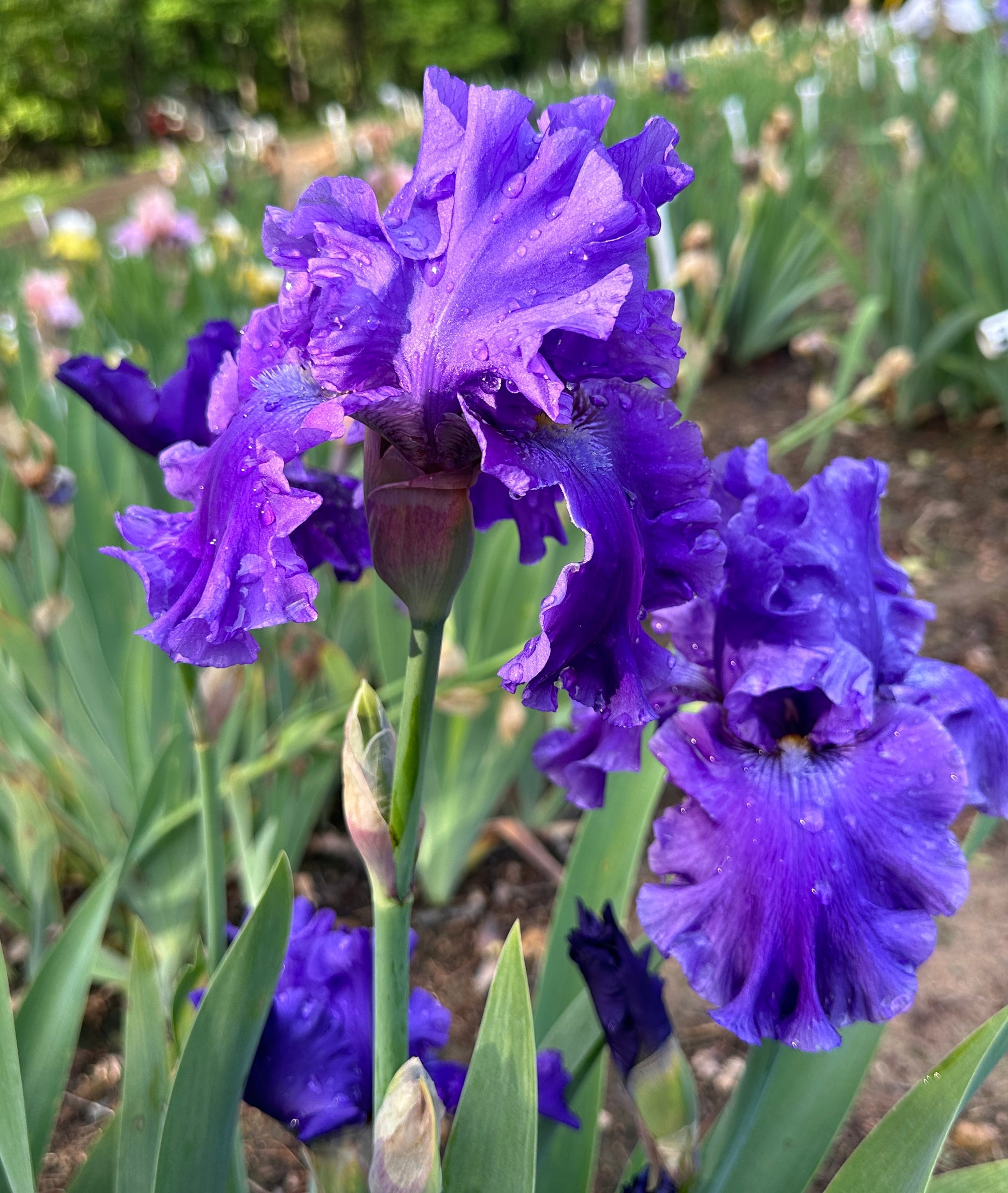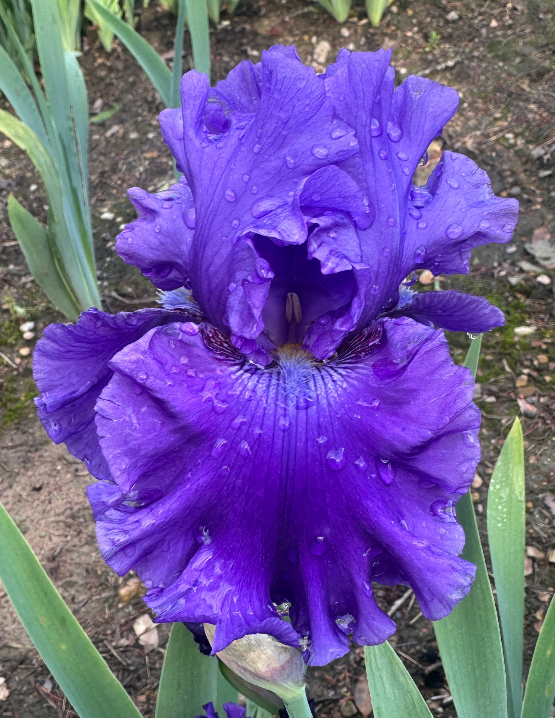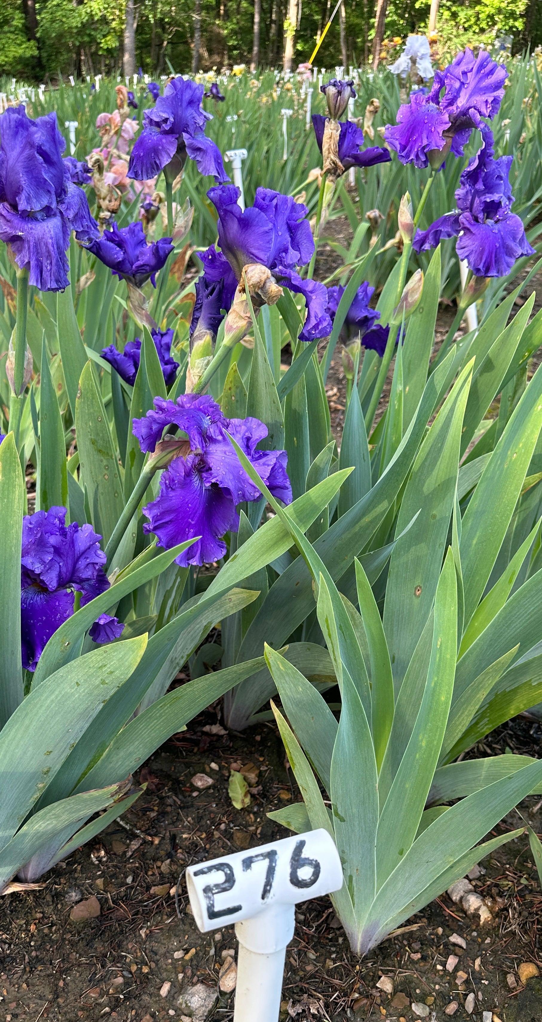 Indigo Princess - (Schreiner, R. 1992). Seedling# V 51-A. TB, 39" (99 cm). Late midseason bloom. Ruffled deep violet (RHS 89C); beards yellow, tipped blue. Parentage: 'Breakers' X seedling# P 81-A: (seedling# L 37-4: (seedling# G 11-1, 'St. Louis Blues' sibling x seedling# I 144-18: (seedling# G 1517-B x 'Neptune's Pool')) x seedling# L 93-5: (('Navy Strut' x seedling# E 1313-A) x ('Fuji's Mantle' x 'Matinata'))). Schreiner 1992. Honorable Mention 1994; Award of Merit 1997.