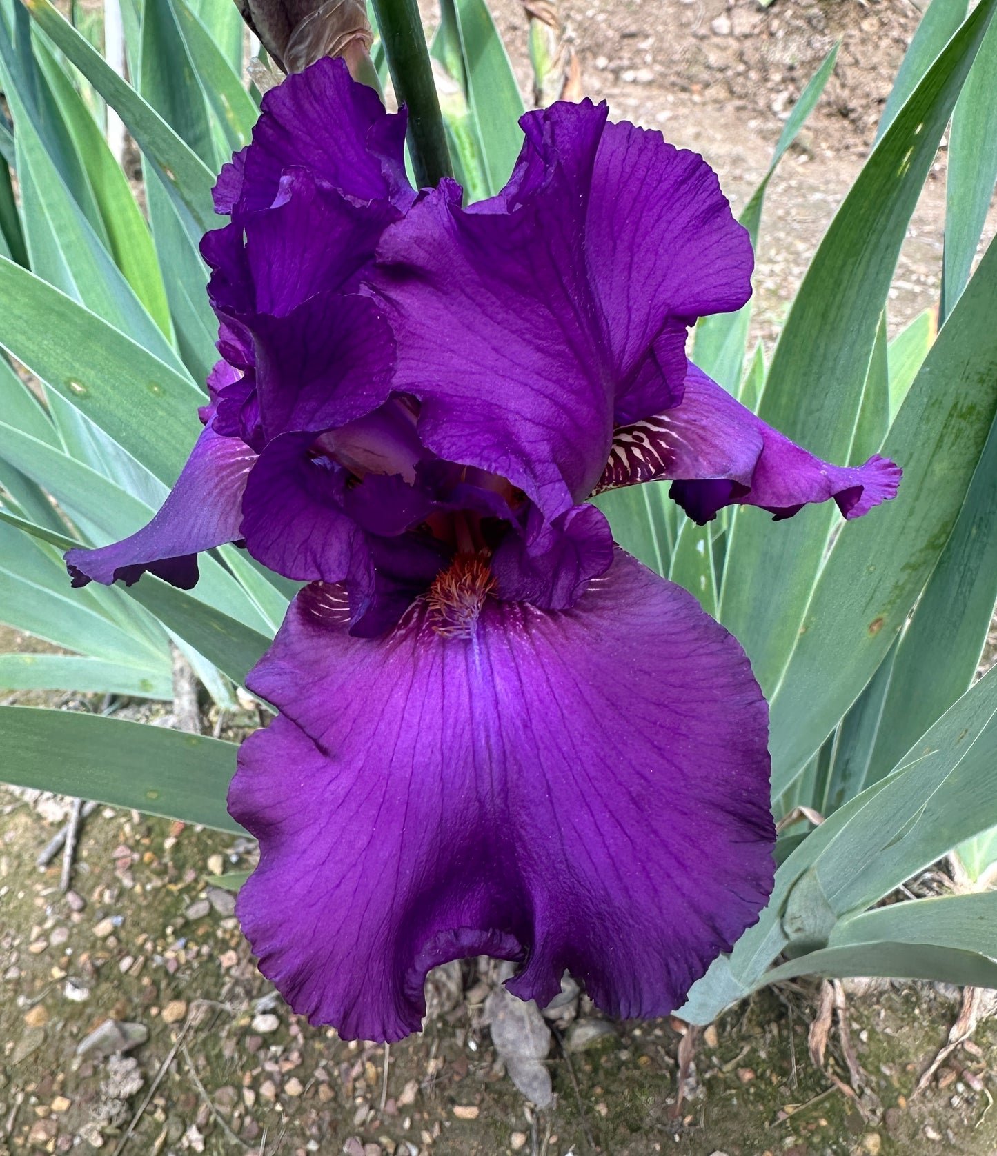 Moby Grape - (Larry Lauer, R. 1998). Seedling# 91-212-1. TB, 36" (91 cm). Midseason to late bloom. Ruffled reddish purple self; beards layered purple, orange, and white, orange in throat; slight sweet fragrance. Seedling# 86-20-5: ('Nancy Glazier' x 'Brandy') X seedling# 88-120-3: ('Quiet Riot' x 'Sweet Musette'). Stockton 1998. Honorable Mention 2000. Rebloom reported in: CA, NE. USDA Zones 4, 8, 9.